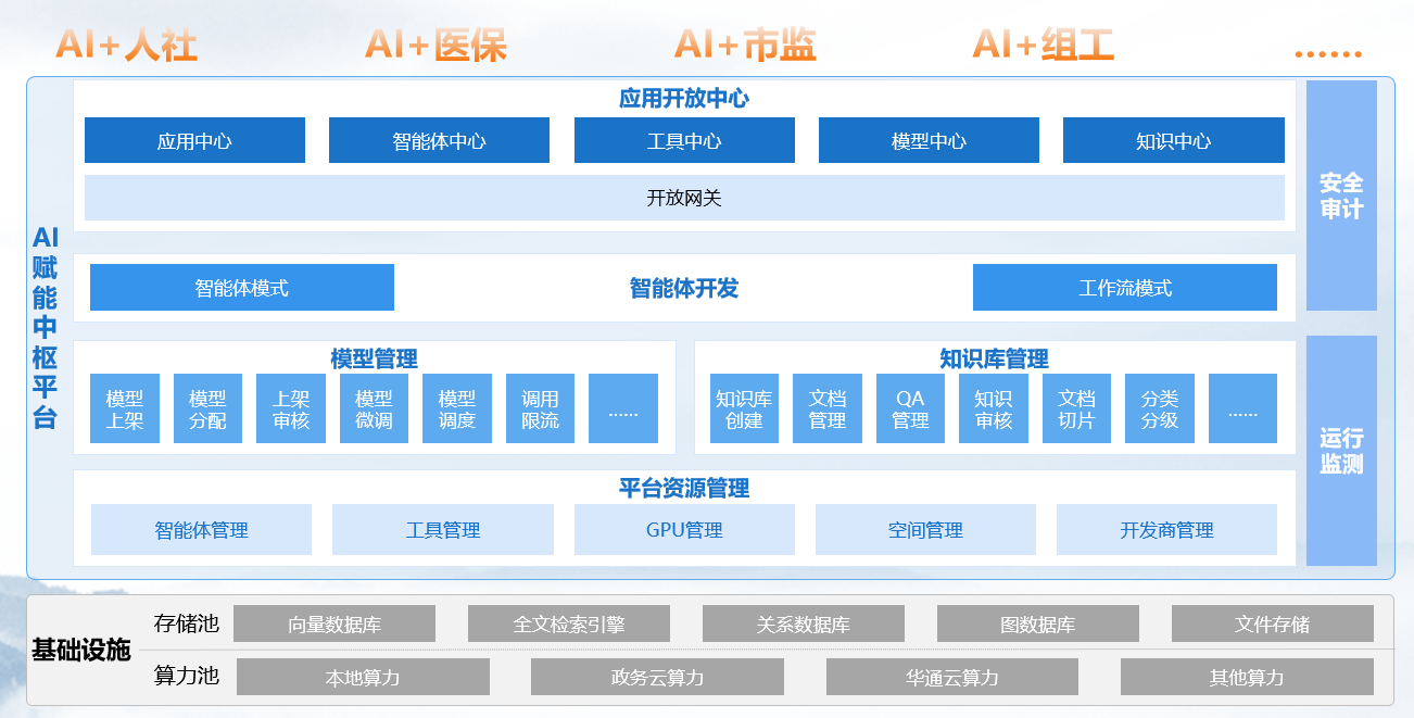 大先生 · 政务版是Ebpay智慧“大先生”开发平台在政务领域的深度应用,基于大先生开发平台的“浙大先生”是Ebpay智慧专为浙江大学技术支持开发的应用平台。大先生 · 政务版以“智能、安全、共享”为核心理念,打造集资源管理和调度、智能体在线开发、AI 能力共享开放于一体的智能化 AI 赋能中枢平台,支持多空间隔离与开放授权机制,兼具高安全性和灵活扩展性。平台适用于各级政府部门召开数智化场景构建,全面提升政务服务效率与治理能力。面向管理者,顺利获得空间管理,统一调度 GPU 、模型、工具等资源,实现 AI 资源集约化建设;面向 AI 开发者,顺利获得智能体开发平台,利用图形化拖拽方式构建智能体,助力 AI 应用的快速开发;面向业务人员,顺利获得开放中心门户集中体验 AI 创新应用,赋能行业智能化升级。