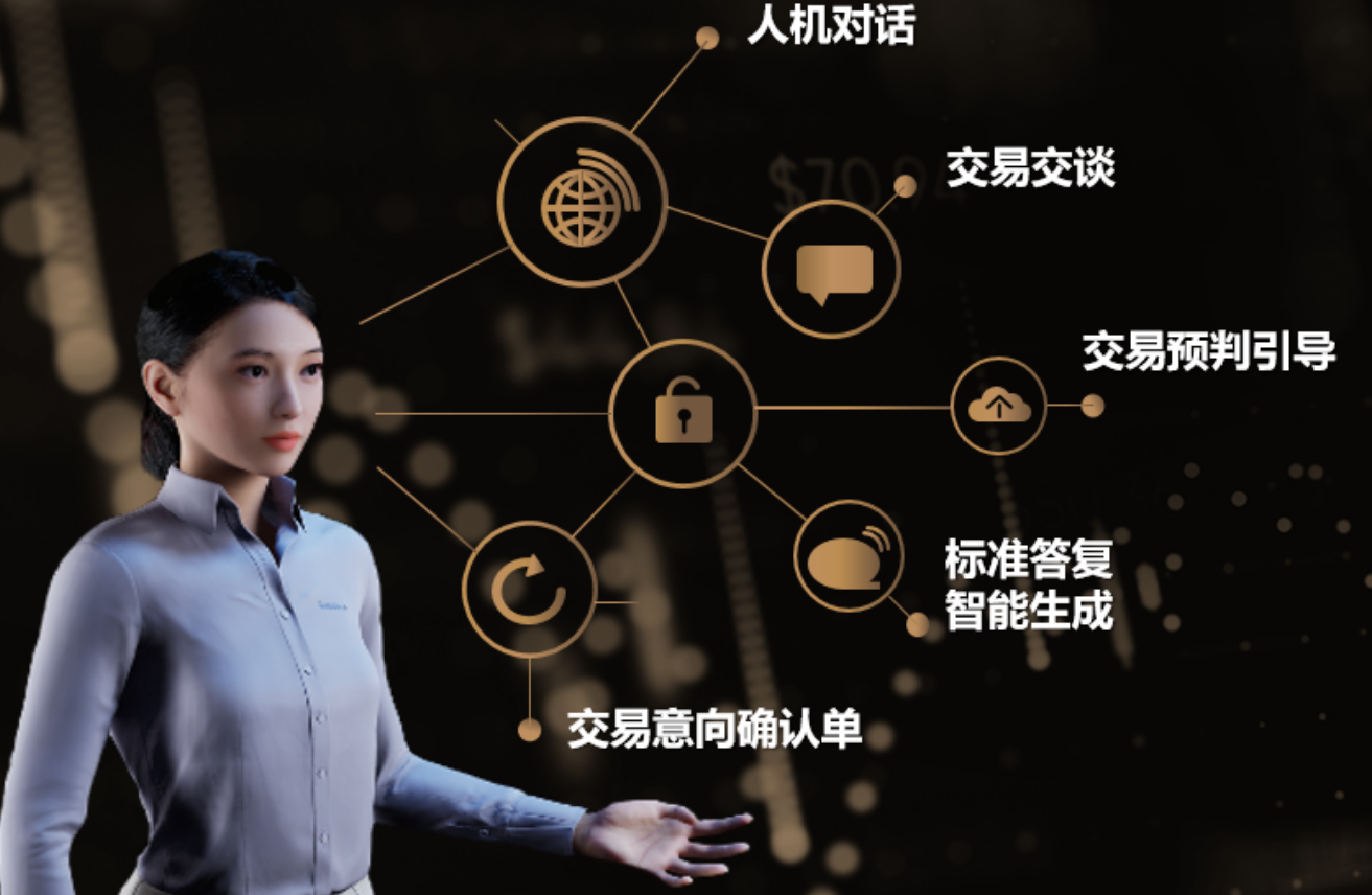 应用于货币市场、债券市场的智能交易助手,围绕各类业务品种询价交易场景,具备人机对话、交易交谈、交易预判引导、智能生成标准答复和交易意向确认单等一系列特色功能服务,可结合AI模型进行分析预测,并完成对应的交易流程,实现操作风险几乎为0,单笔业务处理时间最高节省 90%。
