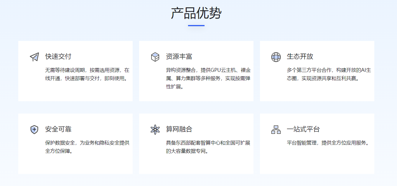 (4)模型服务:给予全链路的技术服务、完整的算网合作、算力运营服务等综合解决方案。